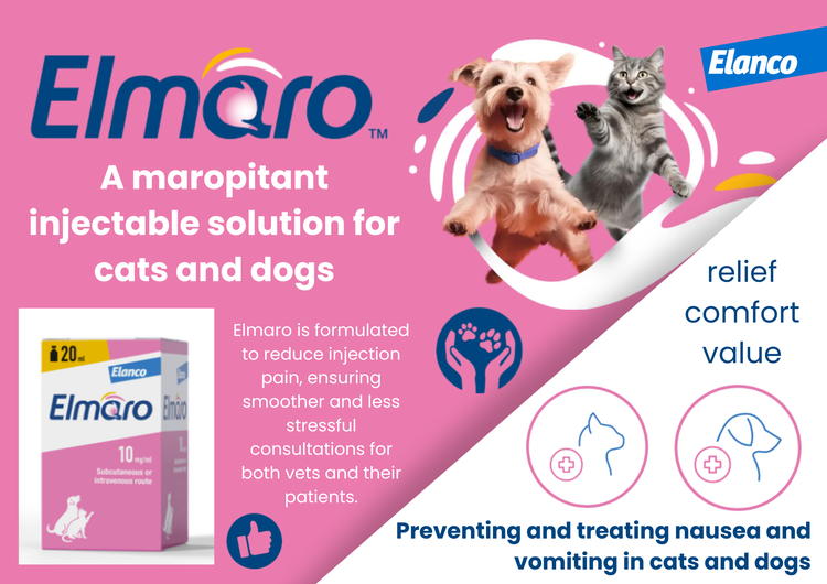 Find out more about Elmaro™, an injectable maropitant solution indicated to prevent and treat nausea and vomiting in cats and dogs.