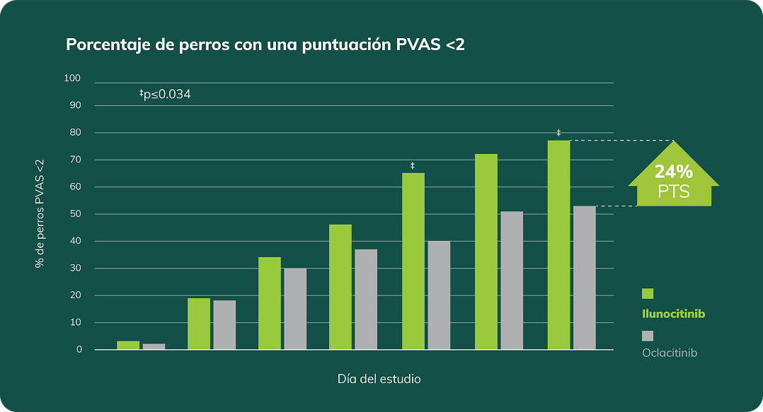 Un 77 % de los perros alcanzó la remisión clínica del prurito, frente al 53 % de los tratados con oclacitinib1