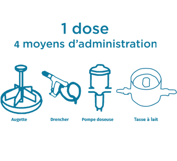 Administration en augettes, pistolet drogueur, pompe doseuse ou tasse à lait