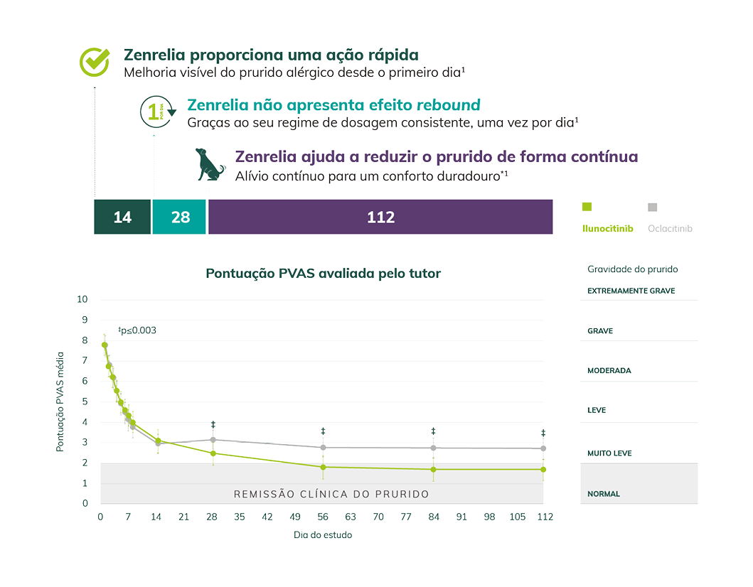 Zenrelia reduz o prurido e melhora as lesões cutâneas, oferecendo uma eficácia melhorada, em comparação com o oclacitinib1