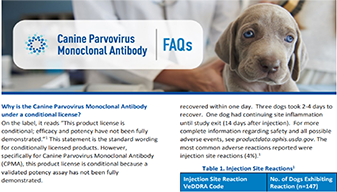 We anticipate Canine Parvovirus Monoclonal Antibody will help greatly decrease the burden of supportive care for CPV. You may be able to save days of labor and stress associated with managing the symptoms of this potentially deadly disease.